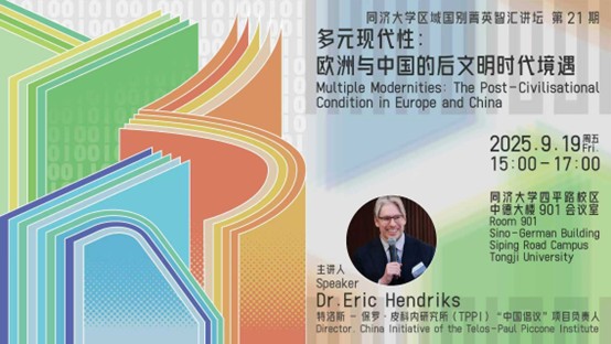2025年9月19日下午,荷兰社会学家埃里克·亨德里克斯(Eric Hendriks)博士应邀做客同济大学区域国别菁英智汇讲坛第21期,带来题为“多元现代性:欧洲与中国的后文明时代境遇”的精彩讲座。