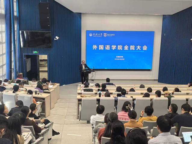 10月28日下午,外国语学院在文远楼106室召开全院教职工大会,围绕采购政策、政治理论学习、师德师风建设、外事工作及学院十五五规划等重点工作展开部署,会议由学院党委书记郑春荣主持。