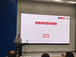 党委副书记宋波结合近年来高校学术不端、违法违纪等负面典型案例开展师德师风警示教育。他带领全体教师重温《新时代高校教师职业行为十项准则》,要求以案为鉴,恪守职业道德,筑牢思想防线。